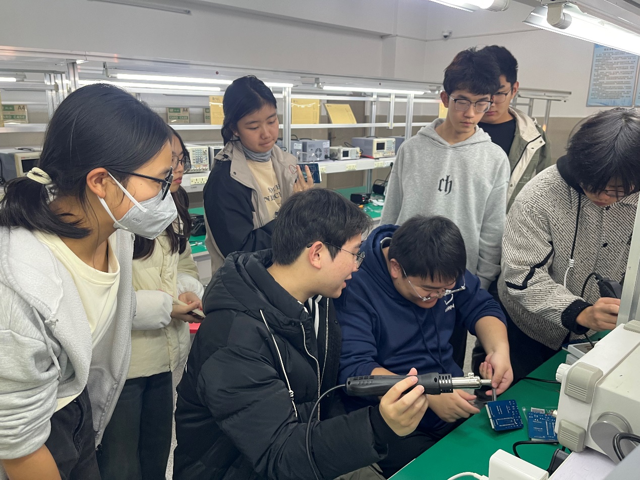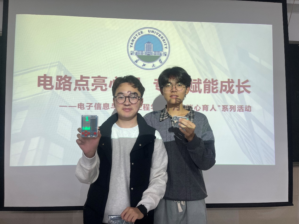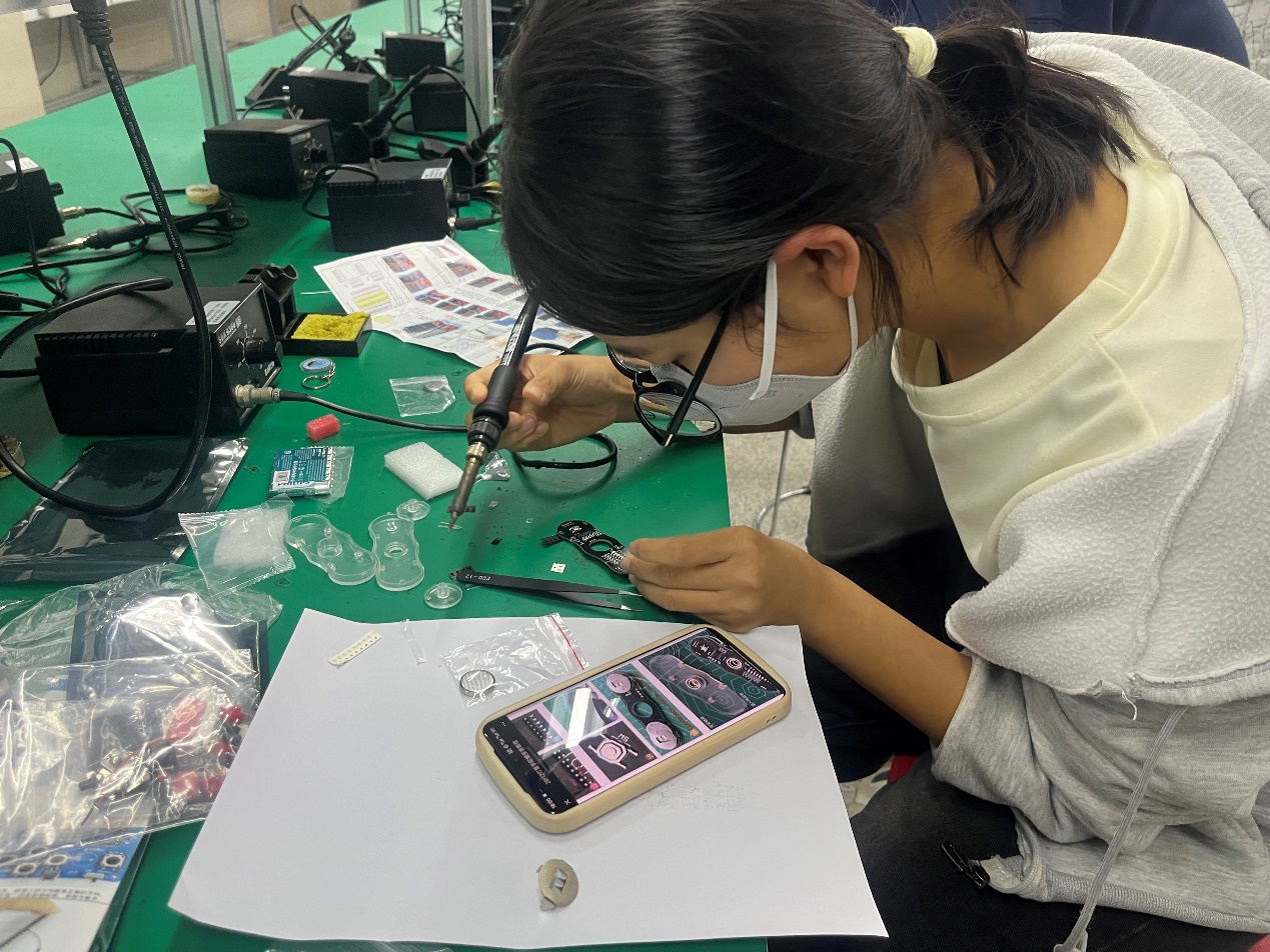 活动以“促进学生心理健康”为核心目标,巧妙结合了学院的专业特色。在老师的指导下,同学们亲手制作“指尖陀螺”和“像素游戏机”等兼具趣味性与科技感的电子作品。通过焊接电路、组装元件,同学们不仅锻炼了专业技能,更在专注的动手实践中释放了压力,体验到了创造的乐趣和成就感。