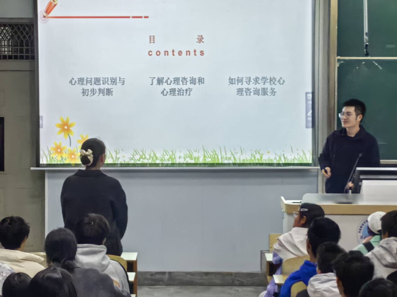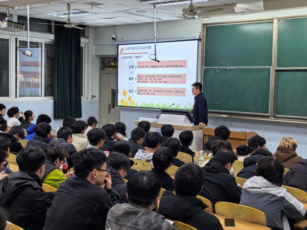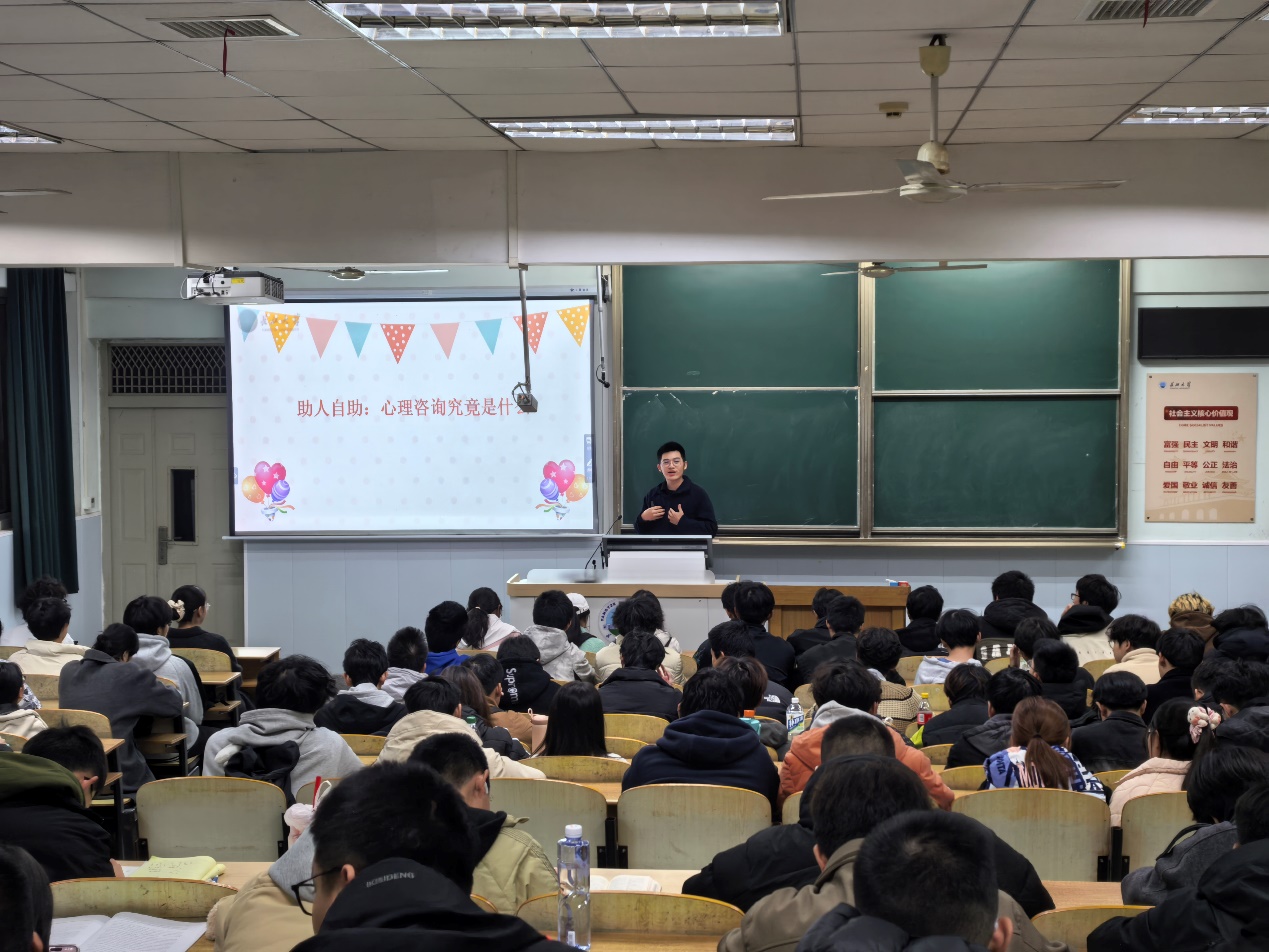 培训以《助人自助:心理咨询究竟是什么》为主题。万谦老师首先围绕大学生常见的心理问题,讲解了如何进行初步识别与判断,帮助骨干们提升对同学心理状态的关注意识。随后,他详细阐述了心理咨询与治疗的基本概念,澄清了同学们可能存在的误解,强调了主动求助是强者的行为。最后,培训重点介绍了学校心理咨询服务的具体资源与寻求途径,确保心理骨干们在遇到需要帮助的同学时,能够清晰、准确地提供指引。