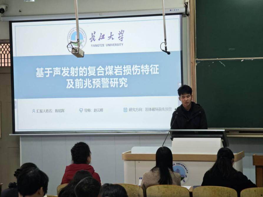 在技术应用与学科交叉环节,球王会平台,球王会官网入口的尹恒同学与城市建设学院的陈铭辉同学先后展示了各自的研究成果,尹恒同学深入剖析了边缘计算在油井动液面测量中的应用,并分享了其成果在国际会议SPWLA上的报告经历,展示了传统能源领域的智能化转型前景;陈铭辉同学则结合详实数据,讲解了声发射技术在复合煤岩损伤特征及前兆预警中的应用进展。两位的汇报不仅逻辑严密,更生动体现了跨学科技术在解决实际工程难题中的重要价值,引发了现场师生的热烈探讨。
