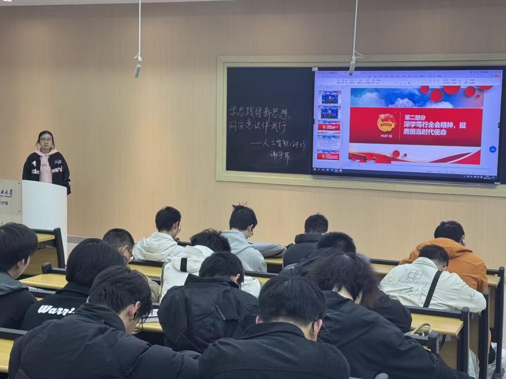 人工智能12403班,团支书主持开展班团会,学习省委书记王忠林省委常委会(扩大)会议上的讲话王忠林要求迅速掀起学习党的二十届四中全会精神热潮,推动全会精神在湖北不折不扣落地生根,他还主持研究推进省属高校“双一流”建设,要求全力推动“双一流”建设实现突破,更好服务国家战略和支点建设广大知识分子和青年学生应深入学习贯彻党的二十届四中全会精神团员青年作为国家的栋梁与未来,要自觉学习宣传贯彻党的二十届四中全会精神,增强奋进新征程、建功新时代的思想自觉与行动自觉。